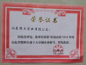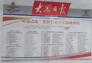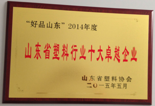 公司被山東省塑料協(xié)會(huì)評(píng)選為十大品牌卓越企業(yè)