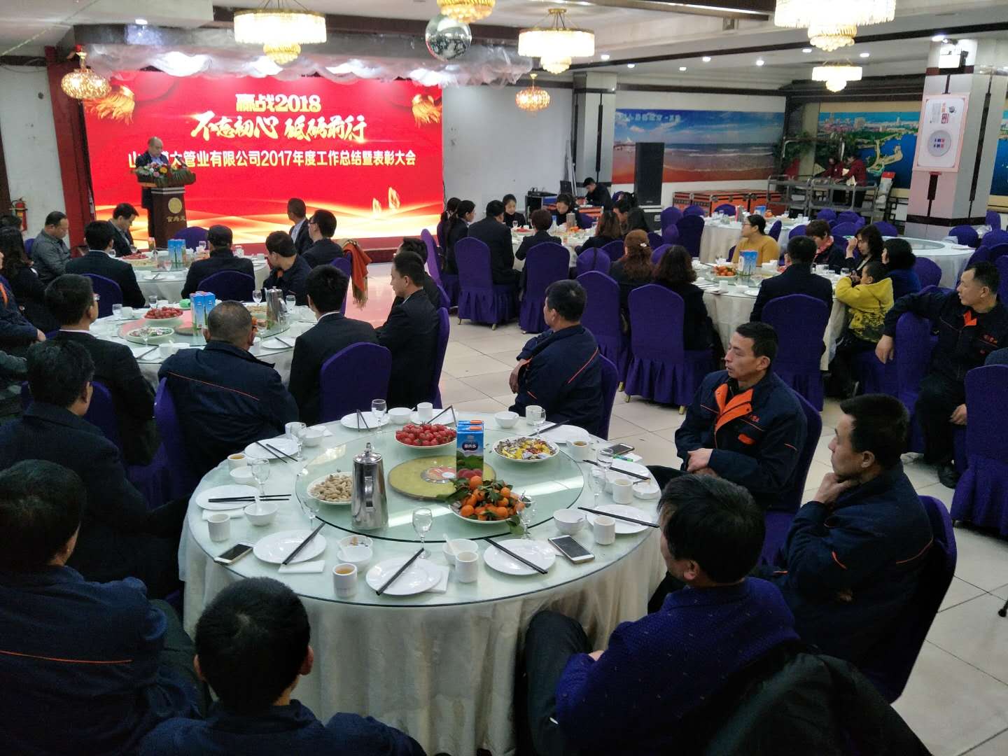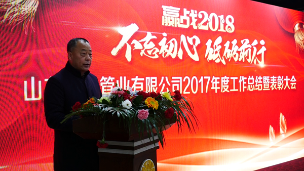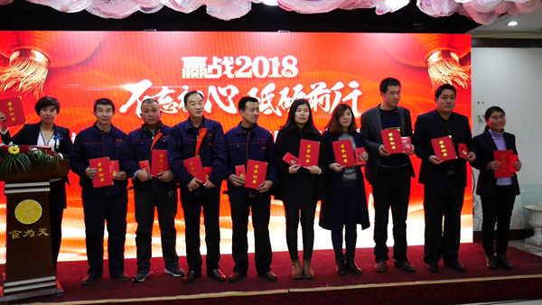 不忘初心,砥礪奮進(jìn),贏戰(zhàn)2018。2018年2月12日公司在食為天大酒店召開(kāi)2017年度工作總結(jié)暨表彰大會(huì)。