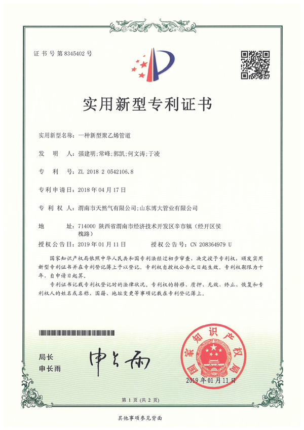 公司與渭南市天然氣公司合作研發(fā)新型聚乙烯管材
