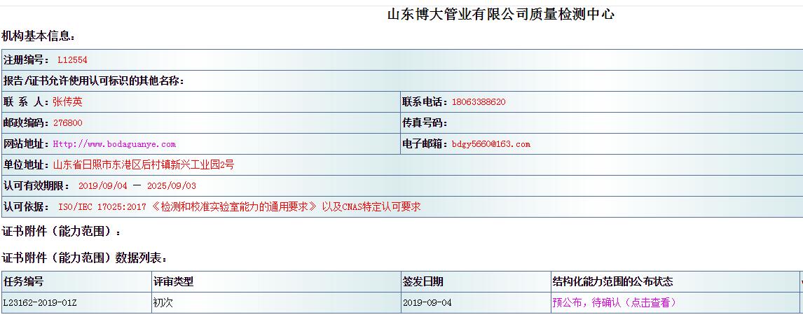 公司質(zhì)檢中心CNAS認(rèn)可資格獲批預(yù)公布