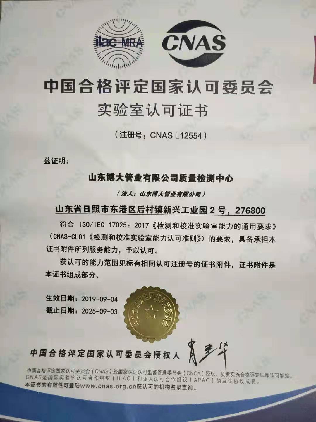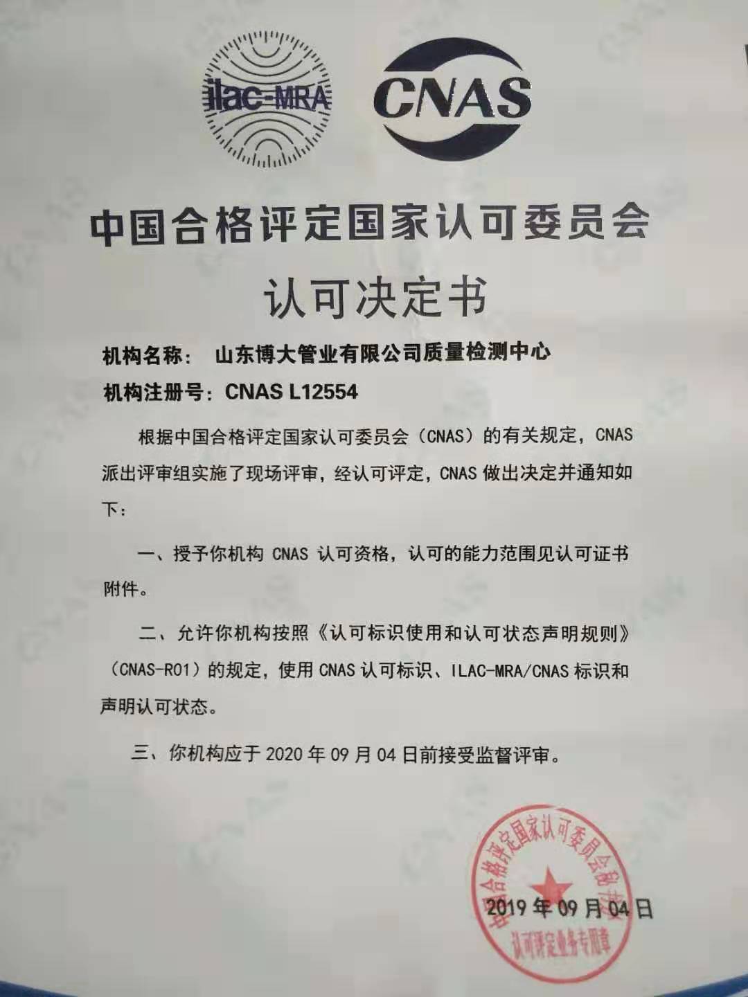 公司質(zhì)檢中心獲CNAS認(rèn)證