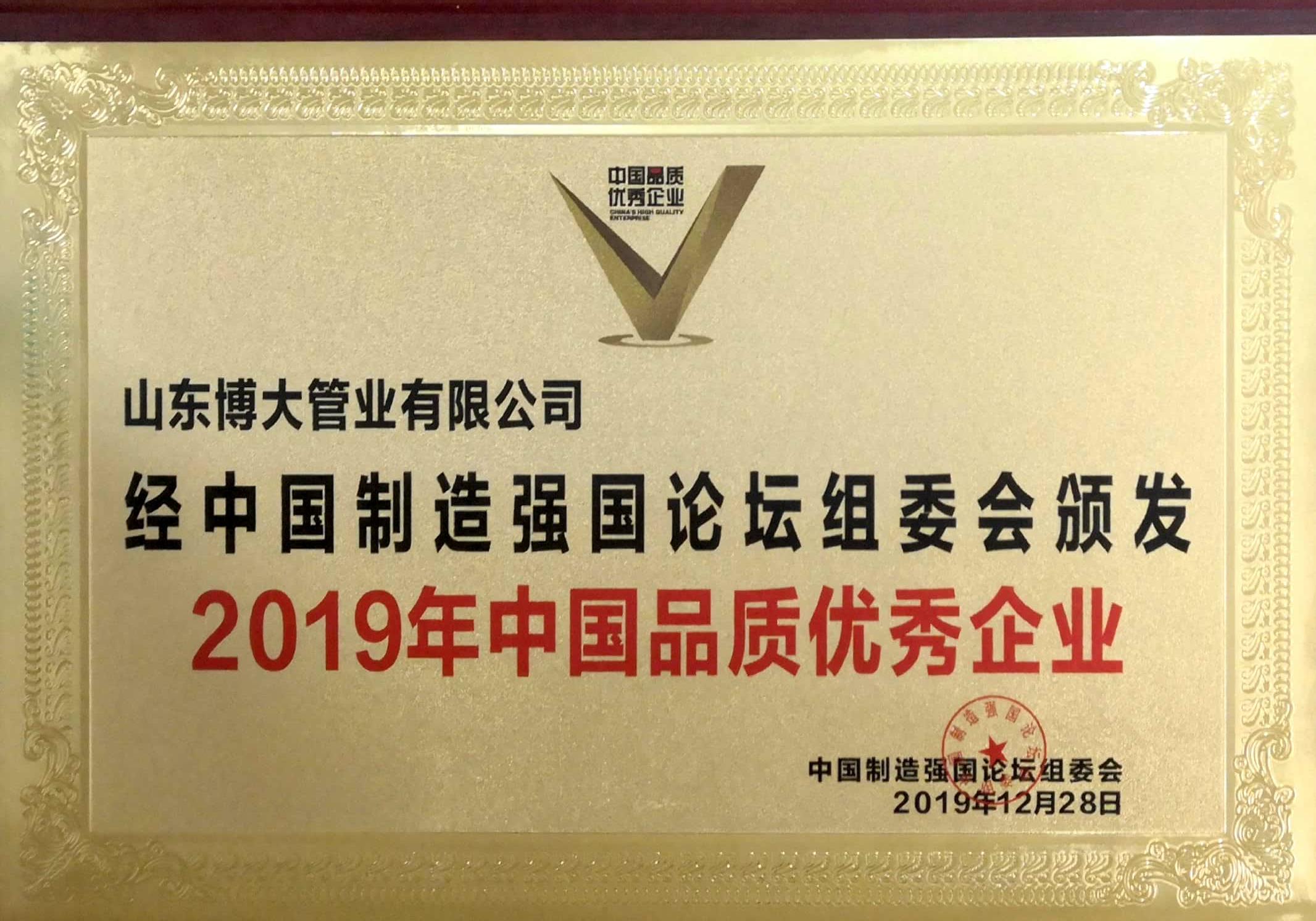 公司榮獲2019年中國(guó)品質(zhì)優(yōu)秀企業(yè)榮譽(yù)稱號(hào)