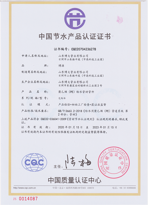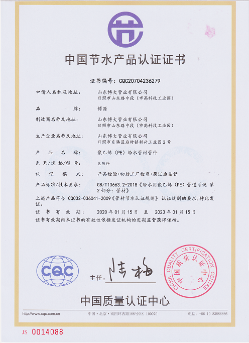 公司產(chǎn)品獲中國節(jié)水產(chǎn)品認(rèn)證