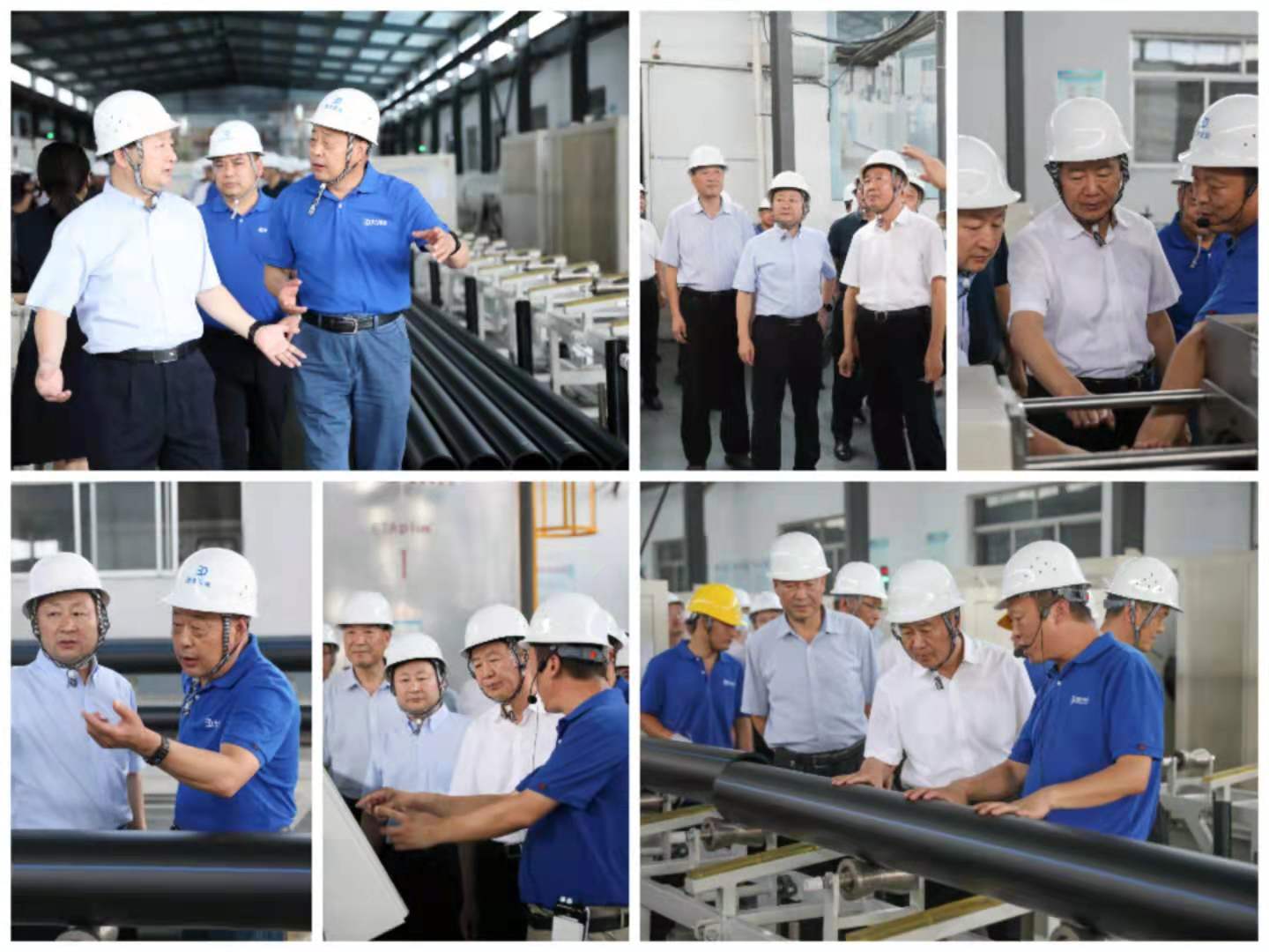 (公司董事長胡善波、副總經理徐公岡向人大代表們介紹管材生產工藝流程)