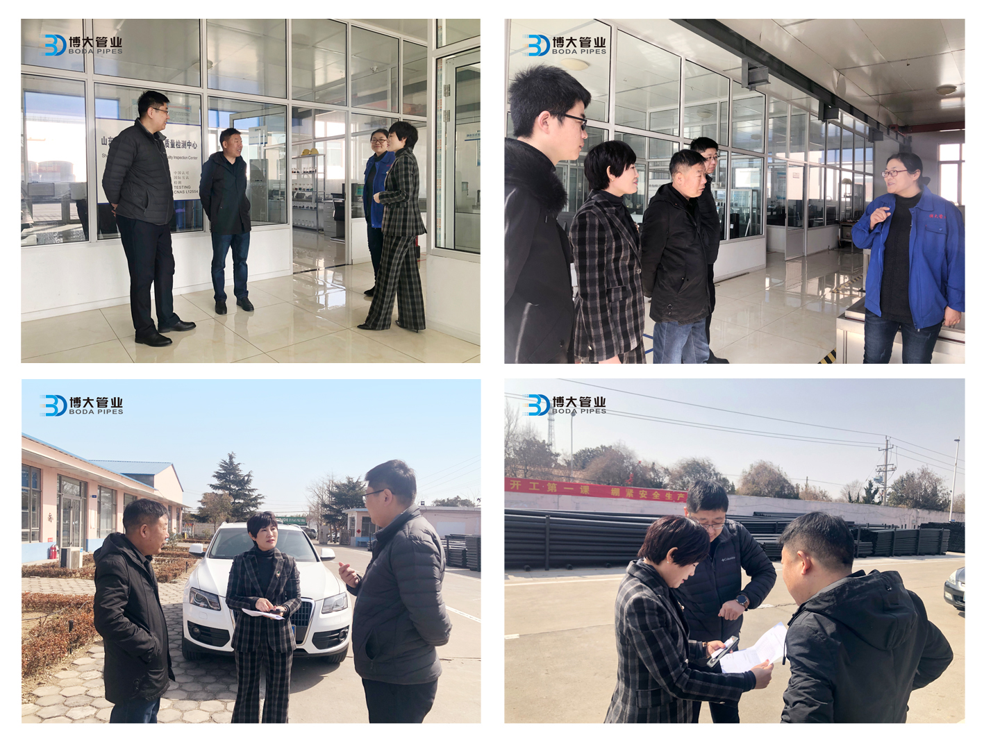 ◇我司營銷總監(jiān)王世花陪同領(lǐng)導(dǎo)們參觀博大管業(yè)廠區(qū)
