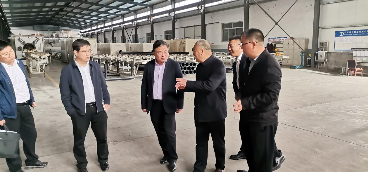 東港區(qū)區(qū)長聽取企業(yè)發(fā)展情況匯報,調研期間,博大管業(yè)董事長胡善波重點介紹公司正在提報的“年產2.7萬噸新型管材生產線智能化升級改造項目”進度。匯報企業(yè)經營管理,生產銷售、安全環(huán)保、企業(yè)戰(zhàn)略規(guī)劃等情況,并實地查看博大管業(yè)生產車間和CNAS實驗室,得到了領導的高度認可。